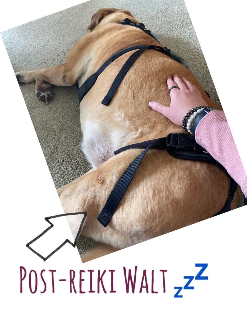 I regularly provided reiki to Walt, which he adored! Once he felt the energy, he’d settle in for a nap, waking up on his own later.